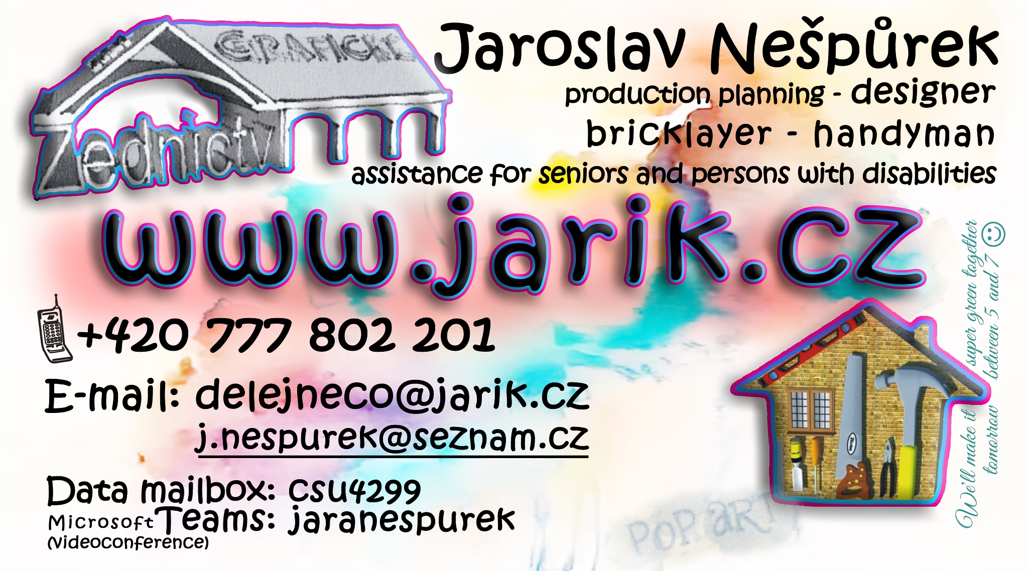 Máááám novou vizitku, která je „SUPER ZELENÁ“ a musím si postěžovat „zelená není, to nemůžu říct“ Ona hraje všemi barvami, vytvořená všemi programy a musím si zase postěžovat, nikdo mi s tím nepomohl. Vizitka je tajemná, dělal jsem ji po nocích. 🙂 Je to pohádková vizitka a já vám povím o ní příběh. Žil byl jeden programátor v Autodesku, co také nespal a ustavičně pracoval na programu AutoCad R14, který jsem se snažil já, jako student naučit. A ono to nešlo. Přečetl jsem Mistrovství v AutoCadu 2000, Mistrovství v AutoCadu 2006 a najednou, kdo by to byl řekl, v AutoCadu se dalo už tvořit ve 3D. Kreslil jsem domečky, dělal si plánečky a prokreslil jsem se až do Irska, abych tam zjistil, že bych byl rád dělal vizualizace, animace. A tak jsem koupil na spaní, kůži havraní a pod hlavu místo polštáře, dovezli mi na káře, bibli Honzi Kříže Mistrovství v 3ds Max. Červotoč knihovní (Anobium punctatum) snídal se mnou 1152 stran nějaký čas a já pár modelů, vizualizací a animací udělal, abych zjistil, že tak mohutného programu je pro mně zednického hulváta v podstatě škoda. Domeček na vizitce „ZednictvÍ KRESLIČSKÉ A GRAFICKÉ PRÁCE“ (na vizitce vlevo nahoře) je modelovaný v AutoCadu, animace je ale udělána v Google SketchUp jako .avi soubor, převedená na animovaný .gif pro použití na webové stránky. Ve SketchUp je komplet vymodelovaný, renderovaný, domeček s nářadím. Vizitka docákaná barvou z Photoshopu, tisk v CorelDraw. Jazyk jsem zvolil Anglický, jelikož se jedná o designovou divočinu, „umění pro skutečné znalce“, „milovníky prasečiny“, „znalce volovin“, „cizojazyčných uzených jazyků a ocasů“… Důležité je vrátit se na začátek pohádky o „SUPER ZELENÉ“ Barvě zmiňované také ve filmu Pátý element (1997, Luc Besson) ukázka je hned níž, kde jsem tím chtěl říci pointu pohádky, že pokud by jste pro mě měli nějakou práci, pomůžu vám, jak budu moci, aby jsme to měli spolu SUPER ZELENÝ (i jindy než) mezi pátou a sedmou, ale kdy bude potřeba….